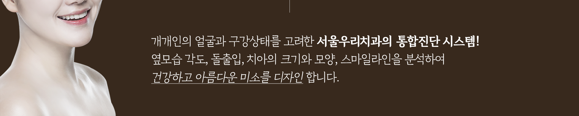 서울우리치과-시스루 투명교정-특별함-만족도-높은-치아교정을-위해서는-무엇보다도-정확한-진단이-중요합니다-3D-디지털-진단을-통해-치료-후의-치아배열과-얼굴을-예측할-수-있는-프로그램을-운영하며-서울우리치과-대표원장의-경험과-노하우를-바탕으로-정확한-진단을-통해-뛰어난-치료-결과를-약속합니다-One-Stop-진료서비스-풍부한-치아교정-임상증례-첨단-정밀진단-장비-구축-만족스러운-치아-변화-세밀한-치료-계획-및-연구 개개인의-얼굴과-구강상태를-고려한-서울우리치과의-통합진단-시스템-옆모습-각도-돌출입-치아의-크기와-모양-스마일라인을-분석하여-건강하고-아름다운-미소를-디자인합니다