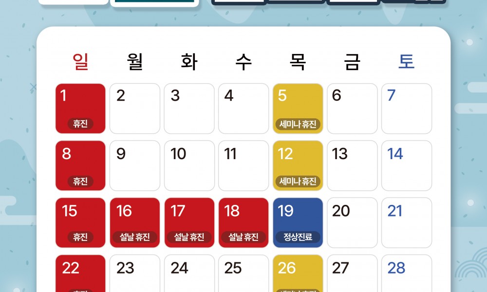 진료일정을 참고하시어 예약 및 내원에 불편함 없으시길 바랍니다.