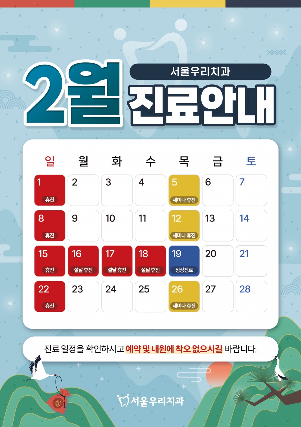 진료일정을 참고하시어 예약 및 내원에 불편함 없으시길 바랍니다.