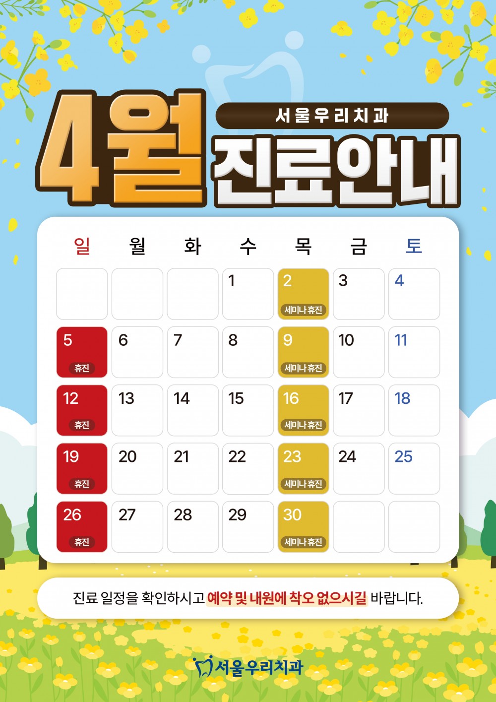 진료일정을 참고하시어 예약 및 내원에 불편함 없으시길 바랍니다.