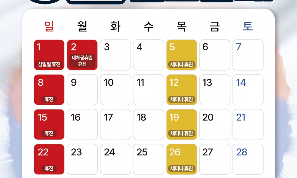 서울우리치과 3월 진료일정 안내드립니다.